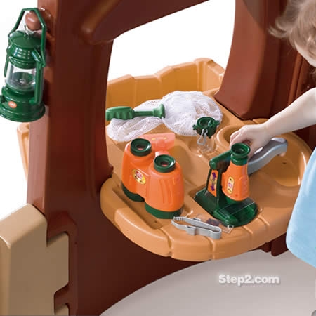 - Корпус домика сделан под дерево со встроенным перископом, смотря в который малыш наблюдает за происходящим в окружающем мире;